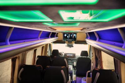 תאורת אווירה יוקרתית ומערכת מולטימדיה מתקדמת – מסכים, מוזיקה ואפשרות חיבור לנייד